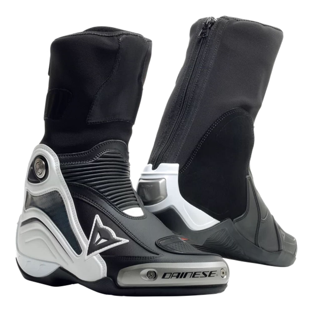 "As botas Axial D1 são a mais recente evolução da melhor bota de corrida Dainese. Projetado para ser usado sob couros. As botas Axial D1 são a mais recente evolução das botas de pista da Dainese, usadas pelos nossos melhores pilotos, nos mais lendários circuitos de corrida internacionais. Uma nova referência de desempenho que eleva novamente o nível de inovação tecnológica e proteção no mundo das corridas de motos.